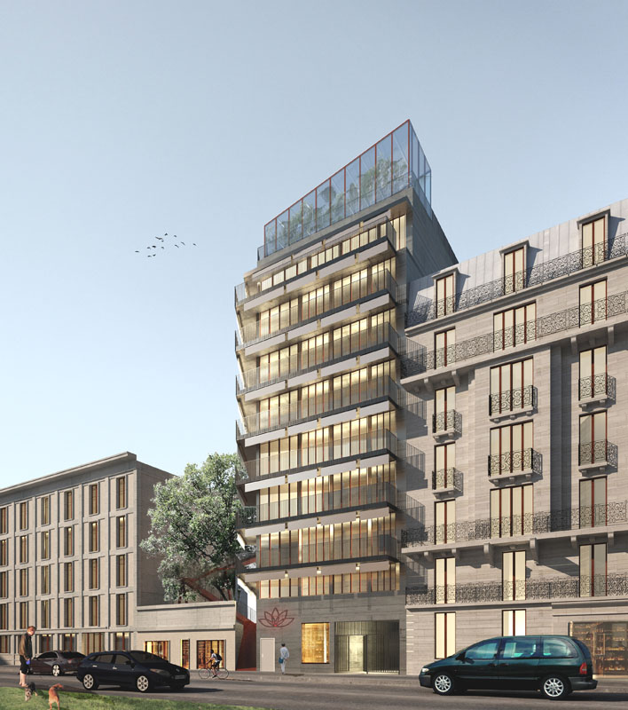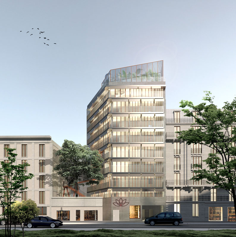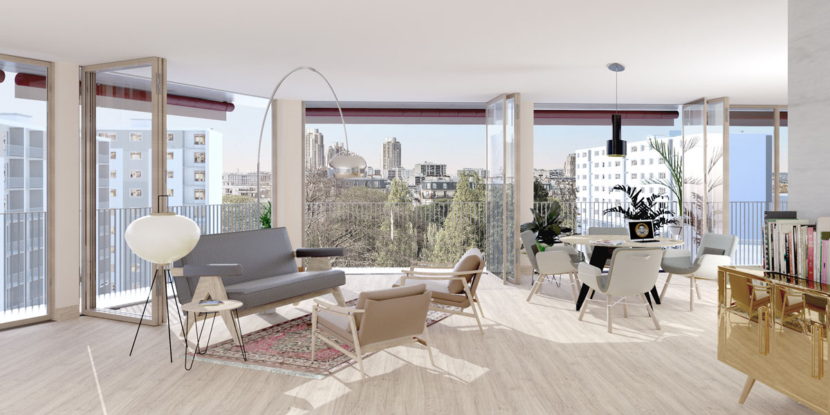 It goes beyond all the clichés of the contemporary apartment to ultimately restore an ideal of life. A city anchor to make room for fantasy, freedom, and sharing. An urban heart that beats, alive with the flow of its residents. The apartments are also very bright, totally glazed to the south, totally oriented towards a large green perspective. As if there were no boundaries between the inside and the outside.