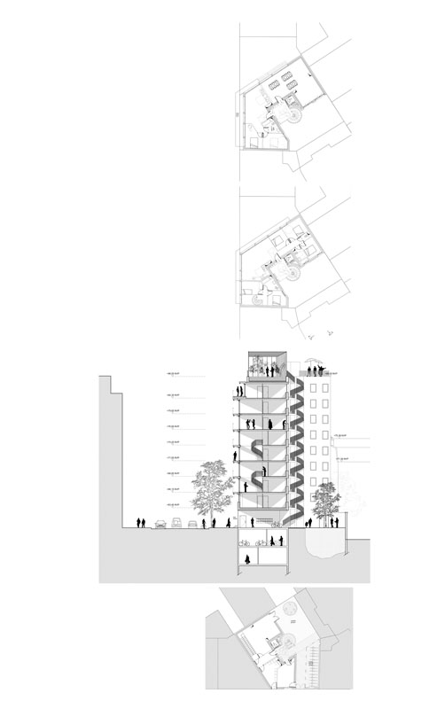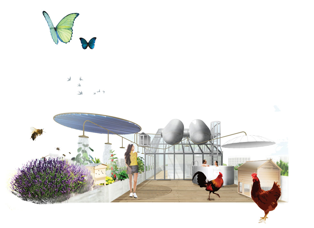 Il déborde tous les clichés de l’appartement contemporain pour restituer finalement un idéal de vie. Une ancre citadine pour faire place à la fantaisie, la liberté, et le partage. Un cœur urbain qui palpite, vivant du flux de ses résidents. Les appartements sont aussi très lumineux, totalement vitré vers le sud, totalement orienté vers une grande perspective verte. Comme s’il n’existait aucune frontière entre l’intérieur et l’extérieur.