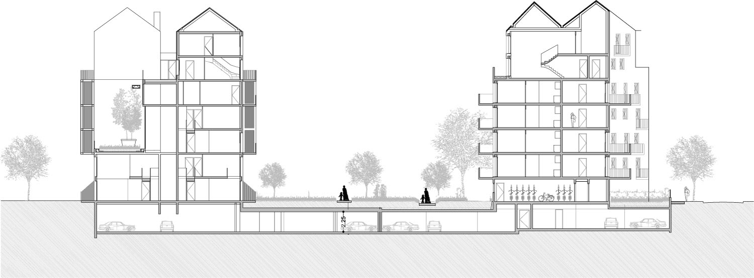 La rencontre de la construction avec ses sujets végétaux va insuffler aux futurs résidents un nouveau de mode de vie : Vivre dans le paysage, parmi les plantes, et en regardant les saisons. Les balcons s’installant dans les feuilles.