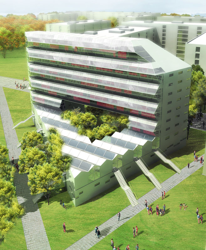 Un immeuble d’habitations en gradins avec ombrières rétractables – Paris XVII, 2008